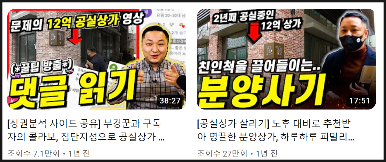 부동산에 관심 있는 많은 사람들이 꼬박꼬박 월세가 들어오는 상가투자를 생각하는데, 상가투자는 미리 공부를 하지 않으면 쉬운 것이 아닙니다. 특히 신도시의 분양상가는 추천하지 않습니다. 신도시의 분양상가를 추천하지 않는 이유는, 일단 비싸기 때문입니다. 경매나 공매, 시세보다 아주 저렴한 급매 등 우량한 상가 물건을 매수할 수 있는 방법은 다양하니, 상가 매수를 하기 전에 미리 공부도 해 보시고, 현장에 임장도 여러곳 다녀보시길 바랍니다. 요새는 유튜브나 카페, 블로그 등에 다양한 상가투자 성공과 실패 사례를 보여주는 곳도 많으니, 어렵게 모은 자금으로 실패하지 않는 투자를 하시길 바라겠습니다. 감사합니다.