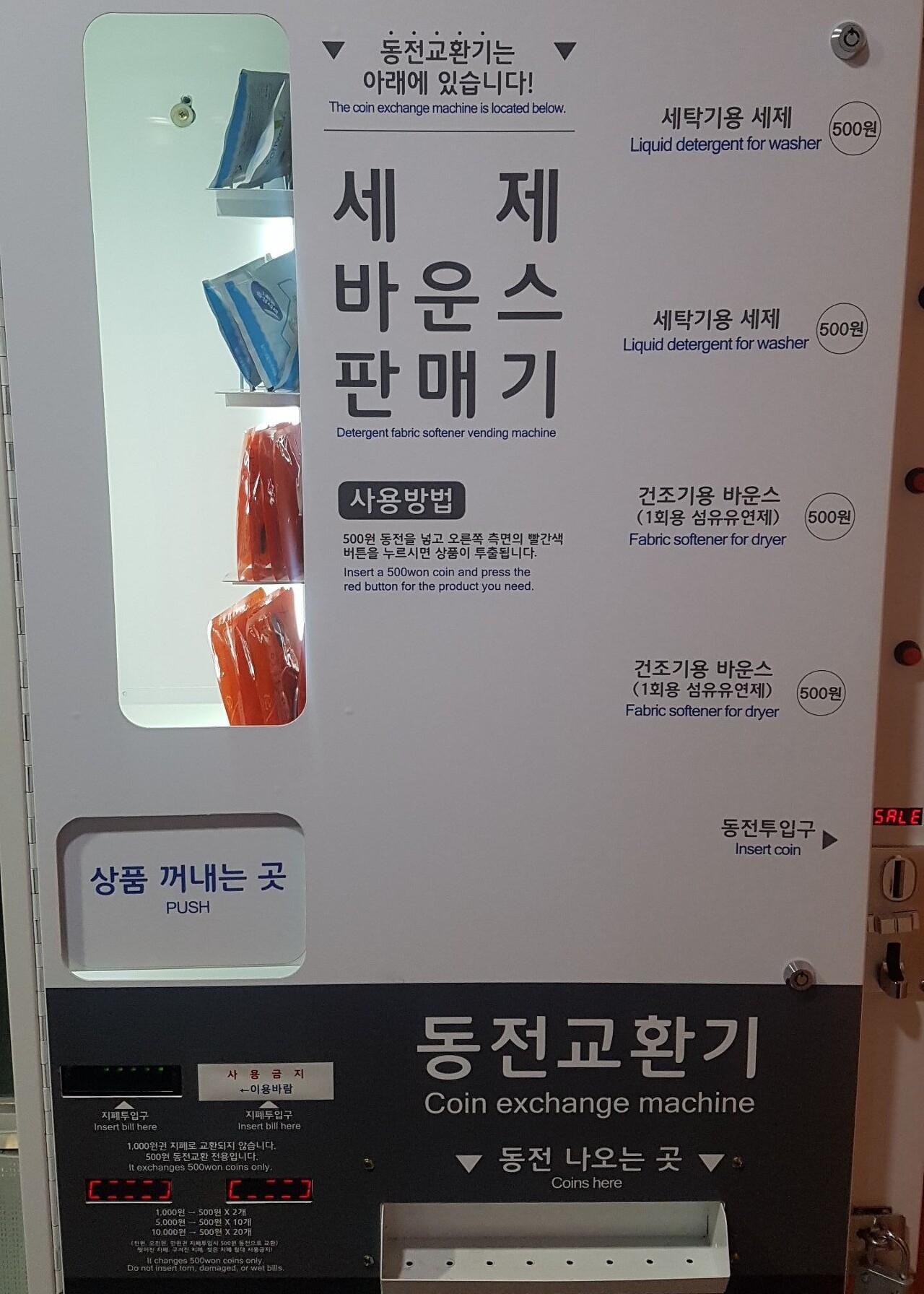 위 사진을 보니, 세제는 자동판매기를 통해 별도로 구매해야 합니다.
