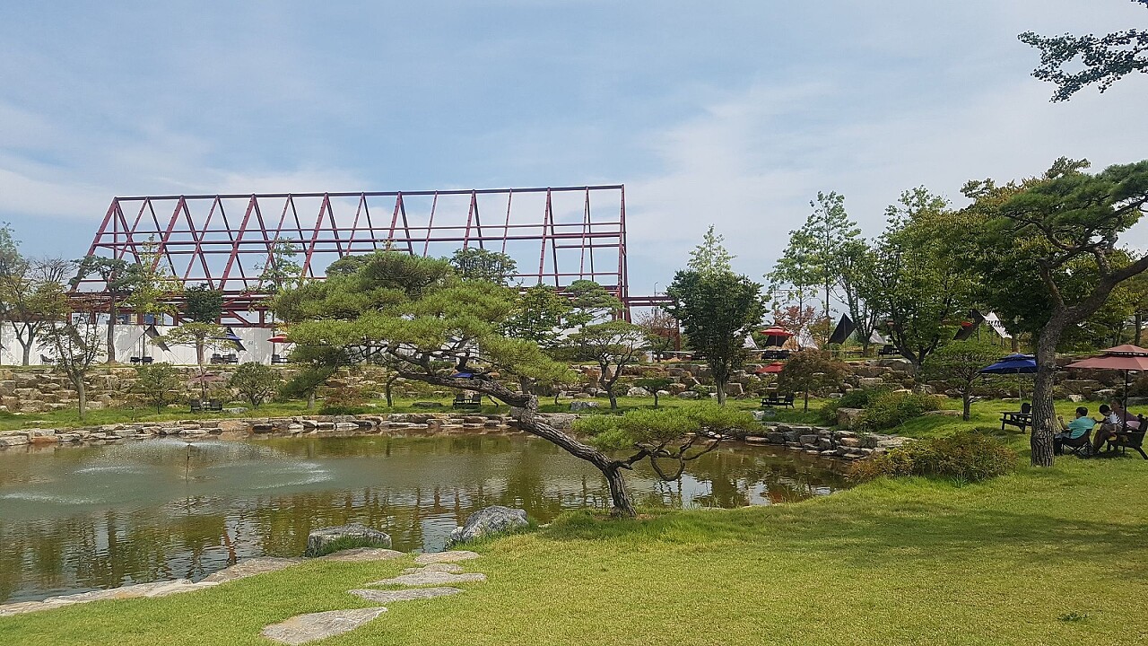 카페 앞에 가슴이 탁 트이는 인공 연못이 있습니다. (위 사진) 매우 큰 규모입니다.오픈 초반에 갔을 때는 연못이 없었는데, 아주 멋지게 만들어놓았네요.