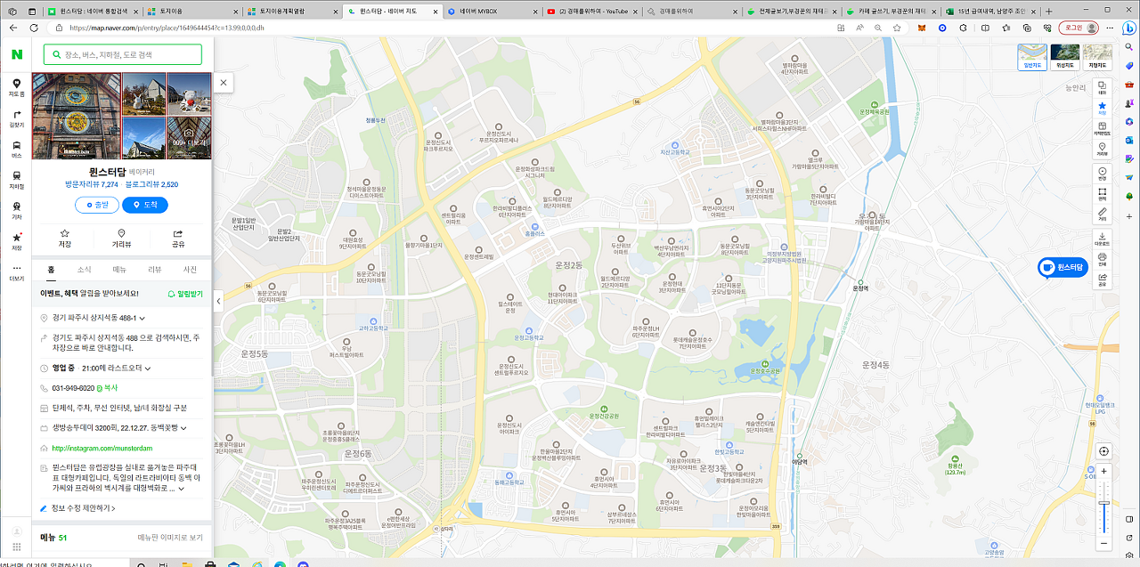 건축허가 표지판을 보니 바닥면적 360평 정도로 건물을 짓고 있는 것으로 보입니다. 사실 이 카페가 위치한 곳은 논밭의 한가운데로, 주변 아파트단지 등에서는 도보로 접근하긴 어렵고, 차로 방문해야 하는데, 현재 뮌스터담은 평일에도 많은 사람이 방문하는 명소가 되었습니다.