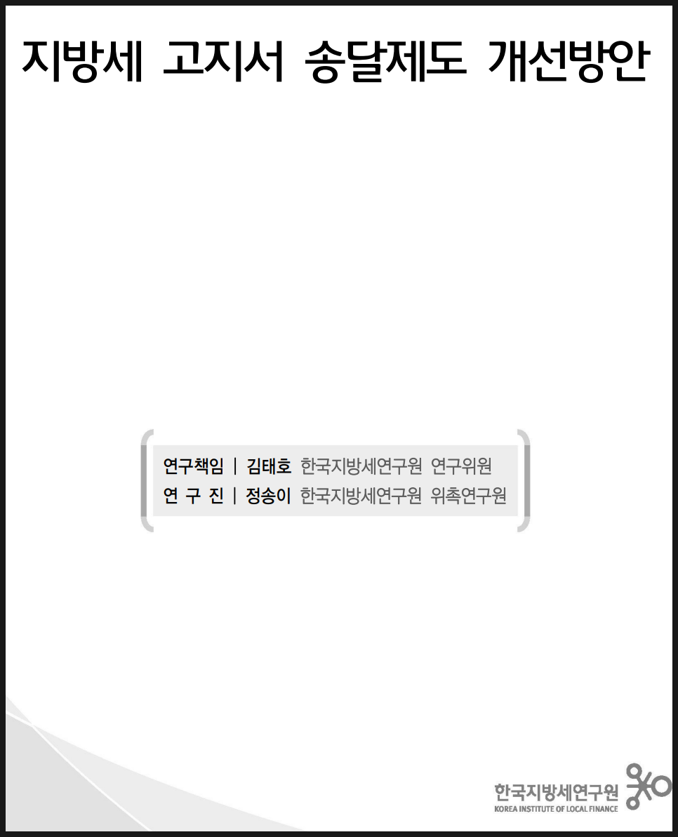 한국지방세연구원이라는 곳에서 지방세 고지서 송달제도 개선방안이라는 문서를 발행하였네요. 101페이지 정도 되는데, 내용을 한 번 읽어봤습니다.