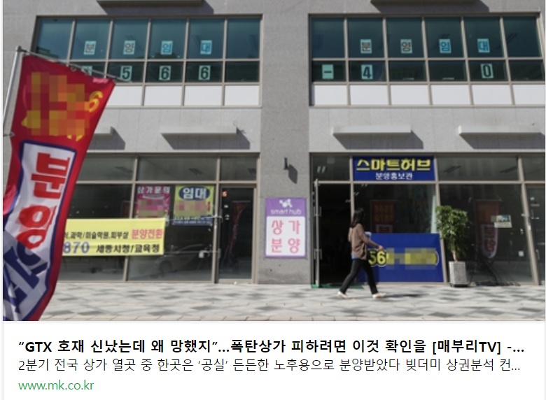 최근 과도한 신도시 상가분양 및 금리인상, 경기침체 등으로 상가분양을 받은 수분양자가 공실로 인한 고통을 겪고, 시행사들도 상가가 미분양되어 파산을 하는 등 상가 관련 부정적인 뉴스가