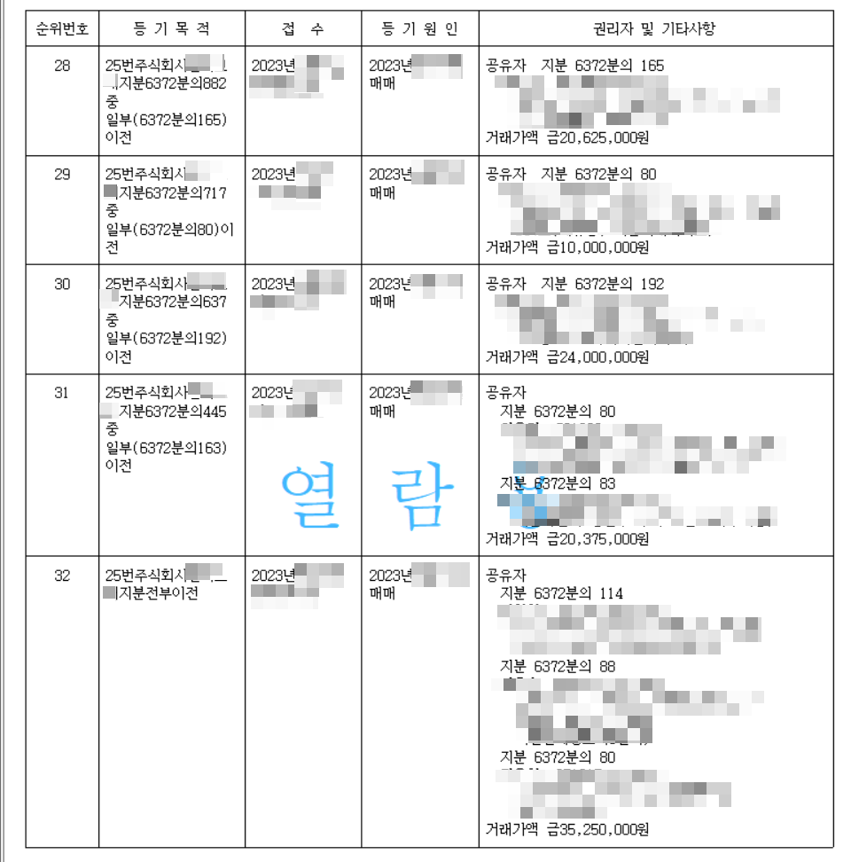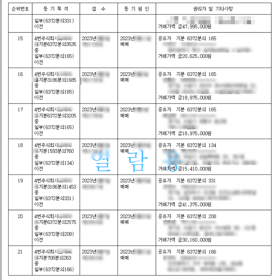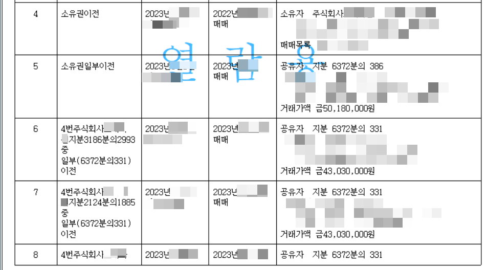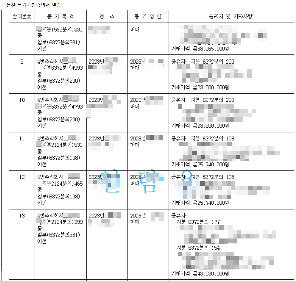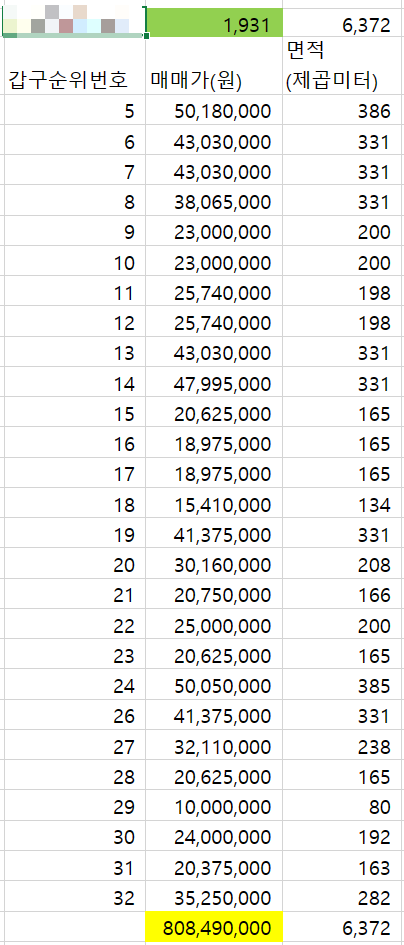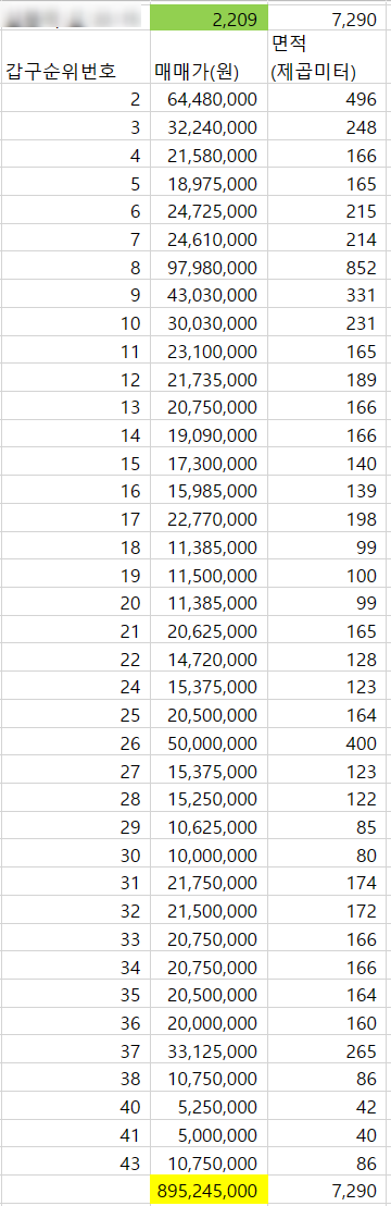 다른 걸 떠나서, 저런 땅을 저렇게 순식간에 판매하는 노하우만큼은 배워보고싶네요. 정말 대단합니다. 여기까지 글 쓰는데 꽤나 힘들었습니다. 등기사항 전부증명서 상의 민감한 부분을 하나하나 모자이크 하고, 판매금액과 면적 등 하나하나 확인 후 엑셀로 입력해서 더하는 과정이.. 힘드네요.