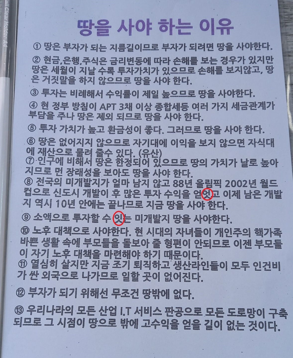 제가 관심이 있다는 듯이 듣고 있자, 부동산은 땅을 투자해야 하고, 현재 경기도에 좋은 투자처가 있고 어쩌구... 라고 하며, 한번 방문해서 꼭 들어보라고, 재차 권유를 합니다. 그렇게 좋으면 본인이 하시지..