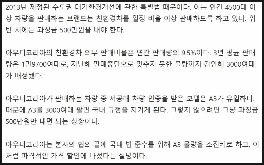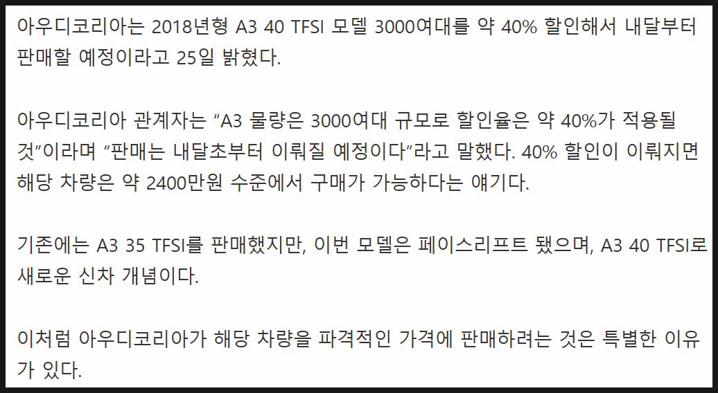2018년 아우디 A3 40% 할인 관련 뉴스기사