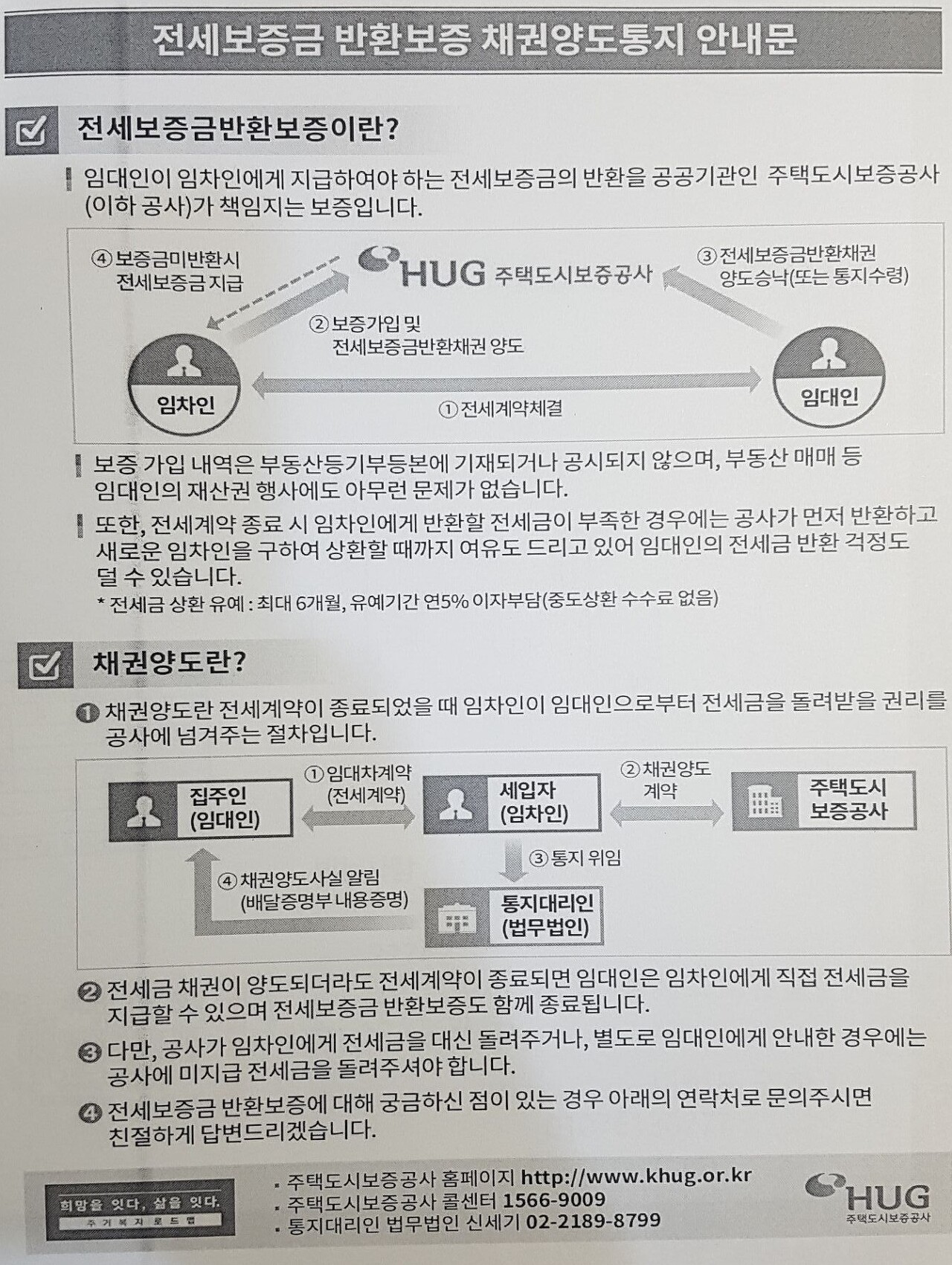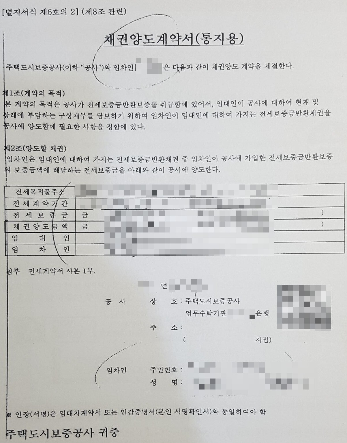 내용증명과 함께 관련증빙도 보내주었네요. (주택도시보증공사와 임차인간의 전세보증금 채권양도 계약서)