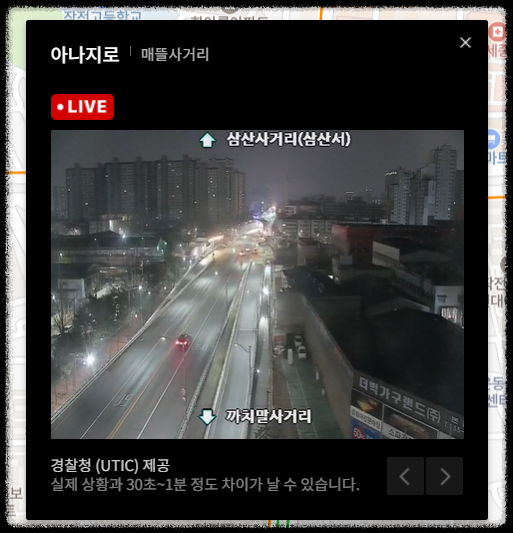 이번에 글을 쓰면서 이것저것 눌러보다가, 현재 도로상황등을 실시간으로 알려주는 CCTV 기능까지 있다는 것은 처음 알았습니다. 아래 사진으로 접근 방법을 알려드리겠습니다.