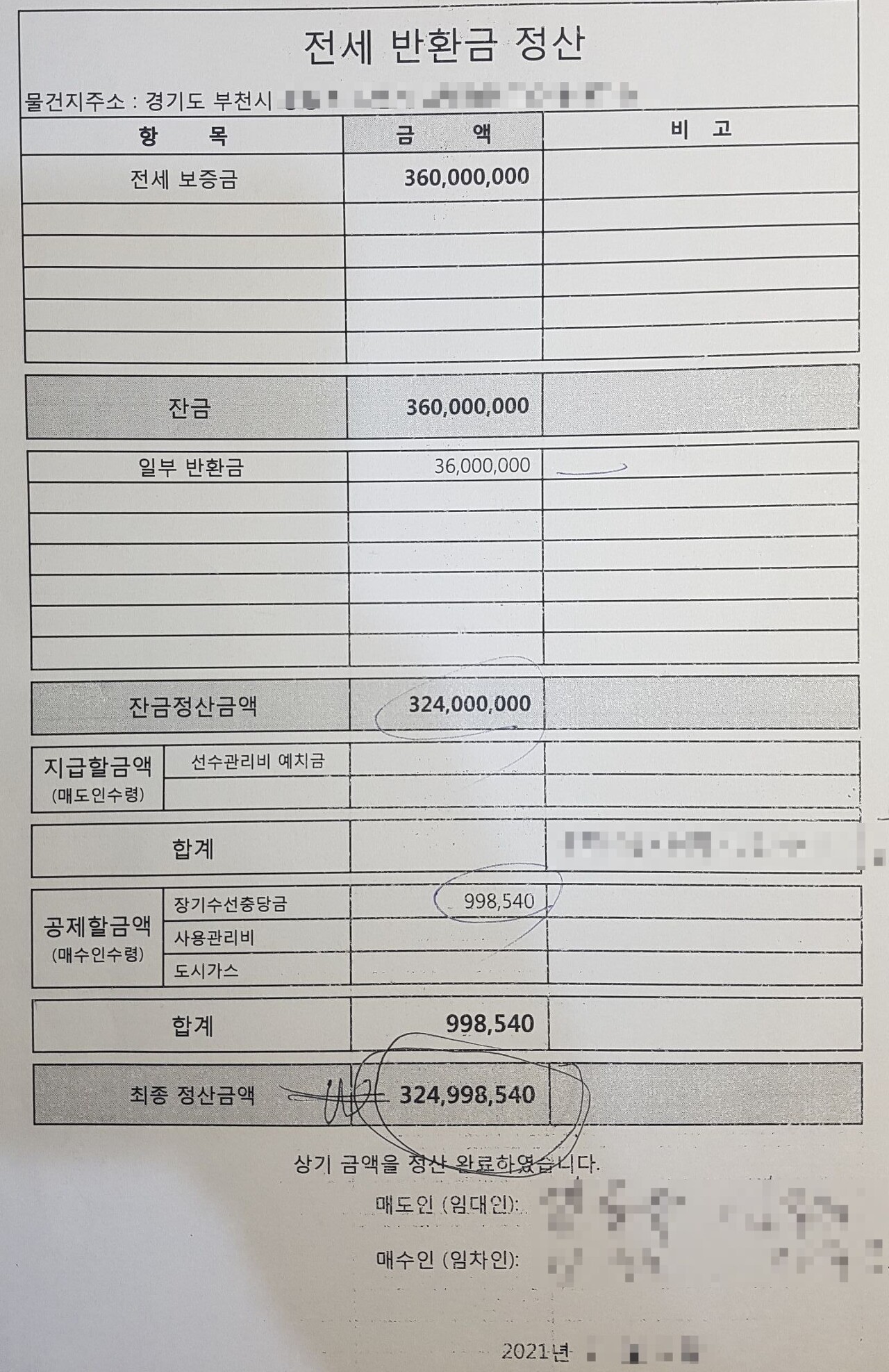 임대인으로부터 기존에 제가 관리비에 포함하여 납부했던 장기수선충당금과 전세금을 위와같이 돌려받습니다. 통상 공인중개사가 다 알아서 정산절차를 도와주기는 하나, 직거래를 하거나 세입자 본인이 잘 몰라서 신경을 쓰지 못하는 경우 돌려받지 못하는 사례도 종종 있으니, 꼭 기억해 놓으시길 바랍니다.