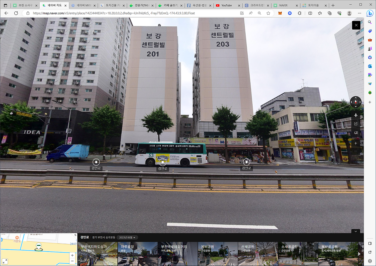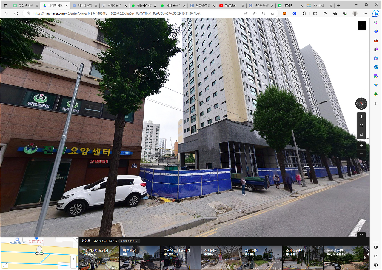 우측 신축 오피스텔+아파트 자리에 10년 전에는 낮고 허름한 상가가 있었던 것으로 기억되네요.