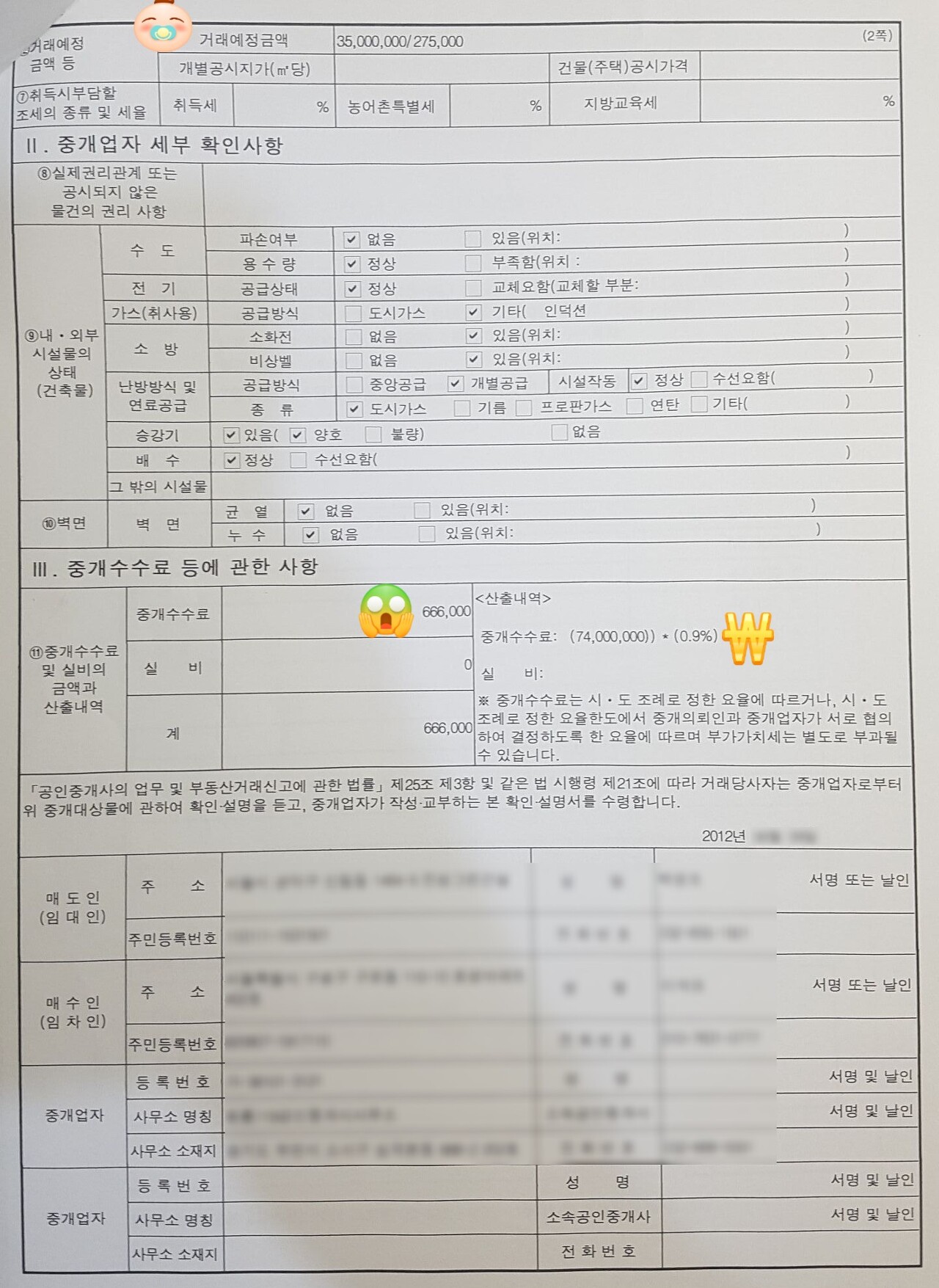 중개수수료는 666,000원 이었습니다. (비주거용 건물에 대한 요율 0.9%를 적용 했었습니다)