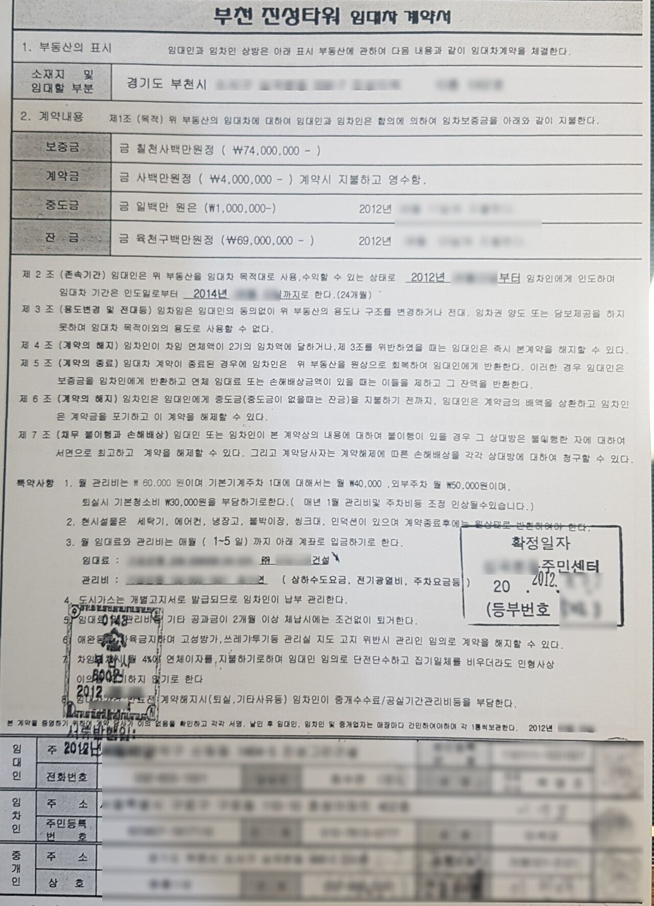 10년 전인 2012년에 7,400만원에 전세로 입주했었네요 ^^