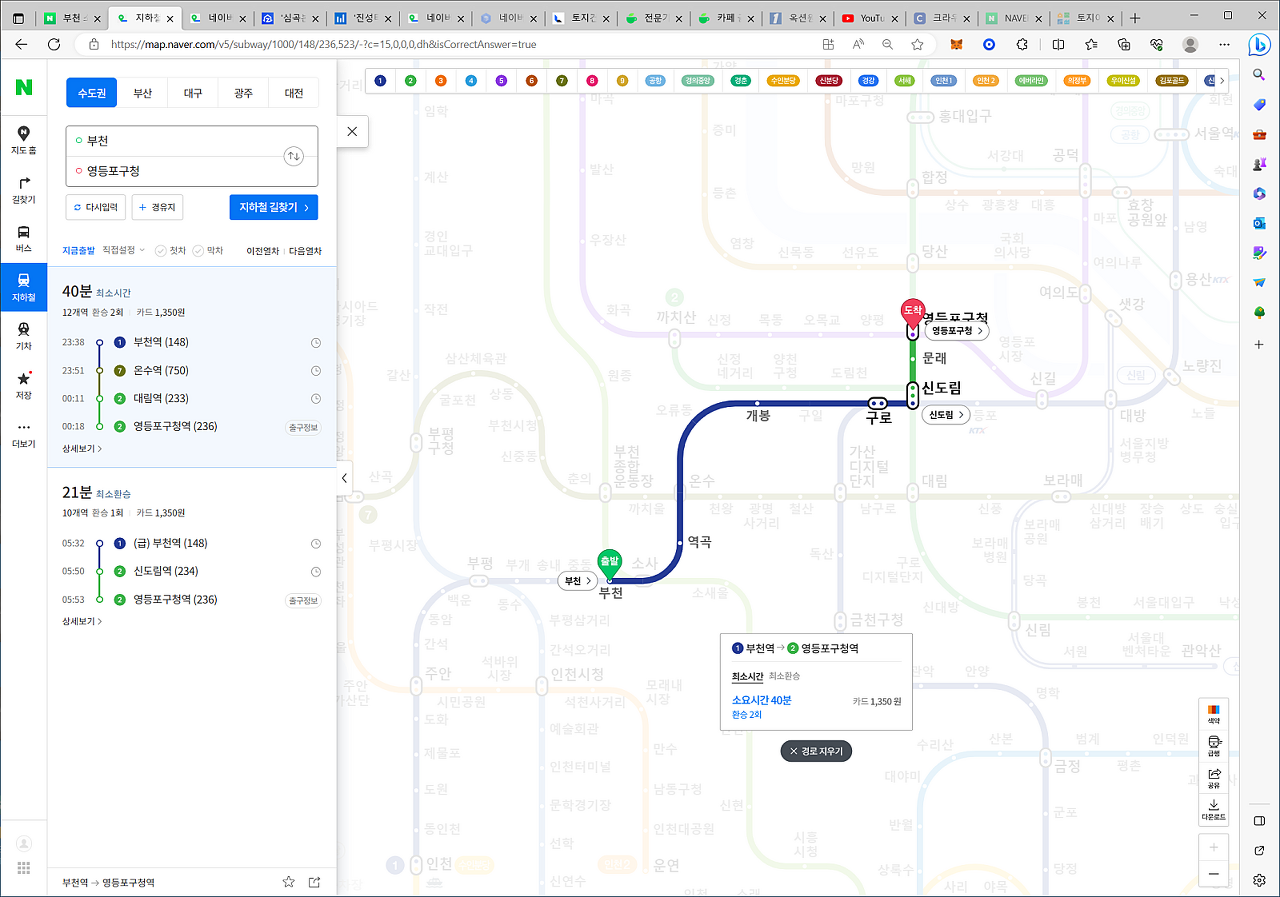 부천역에서 영등포구청역까지 지하철 급행으로 가면 20분 정도 입니다.