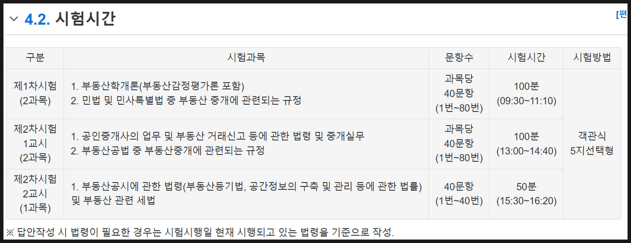 공인중개사 시험과목, 문항수, 시험시간, 시험방법