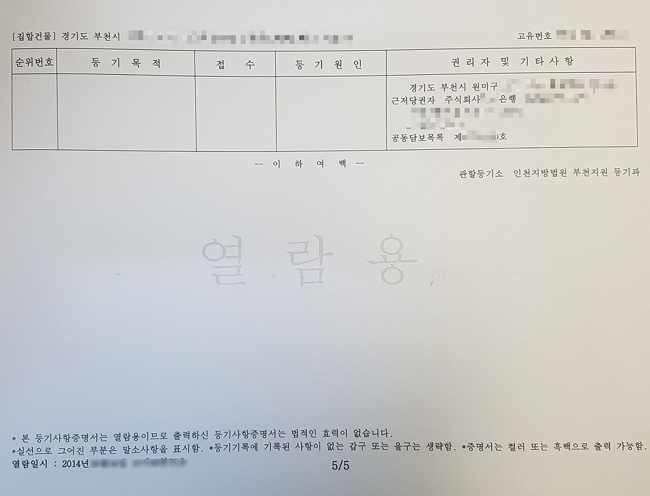 (위 사진) 당시 임대인은 다른 물건과 공동담보로 대출받아 2006년에 매수 하셨었나 봅니다.