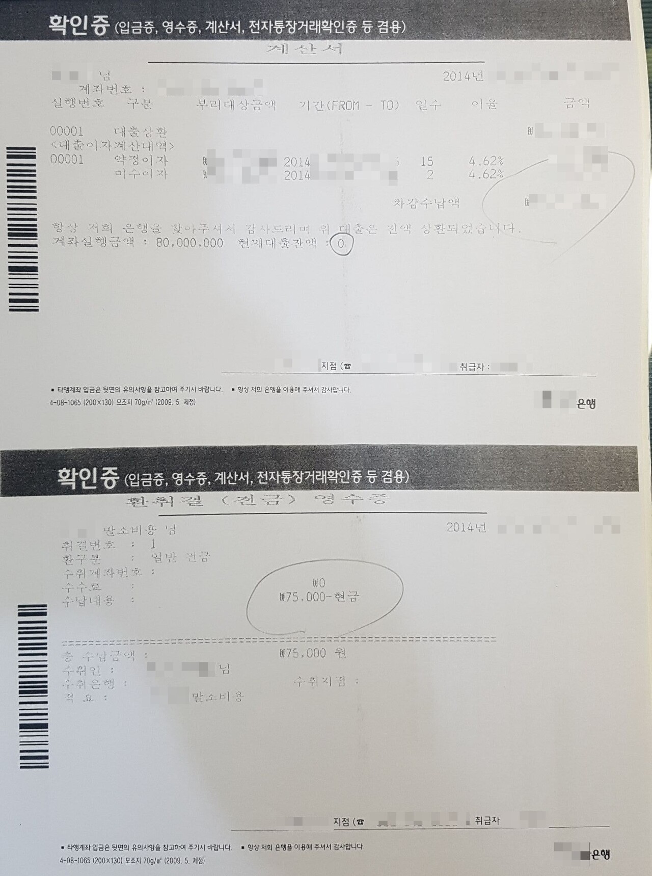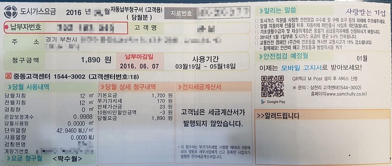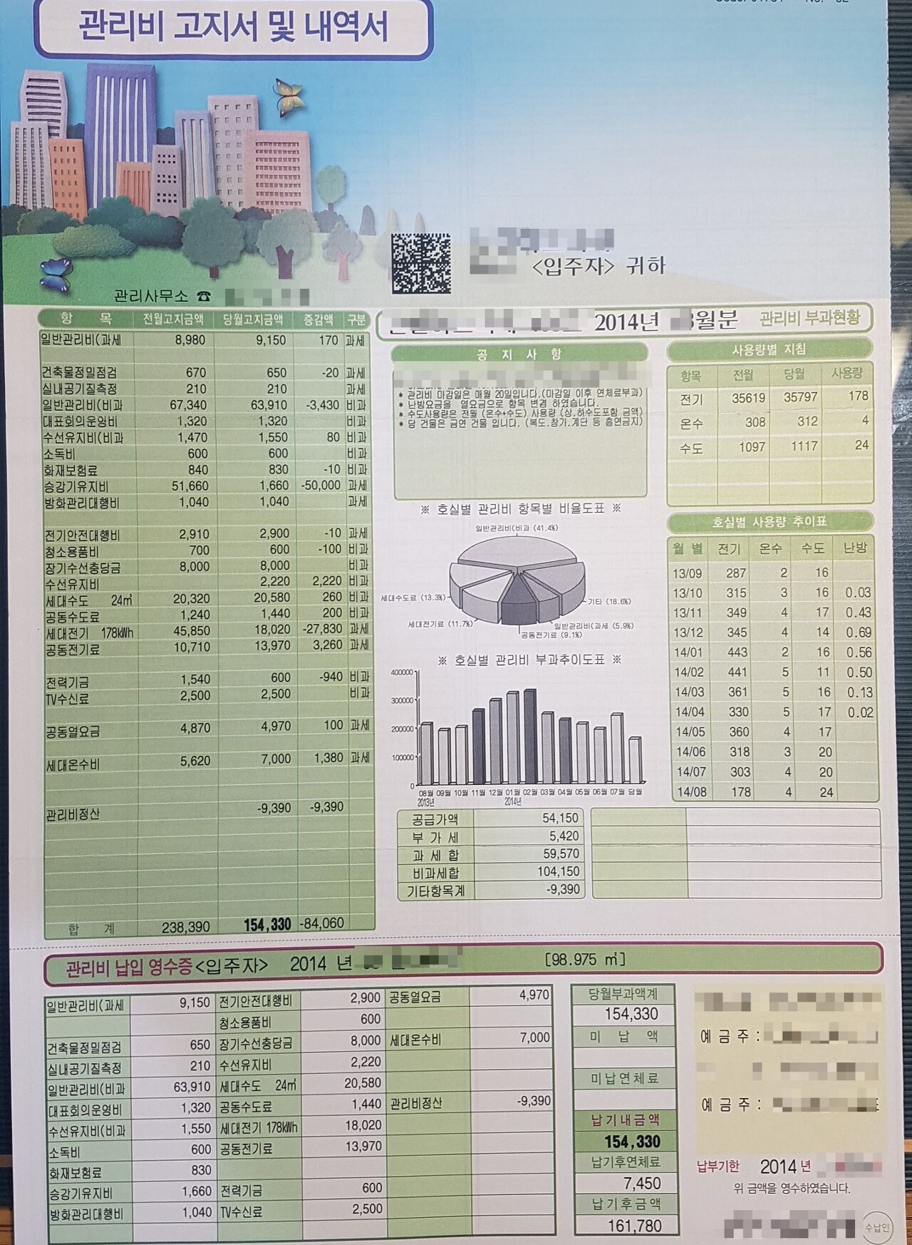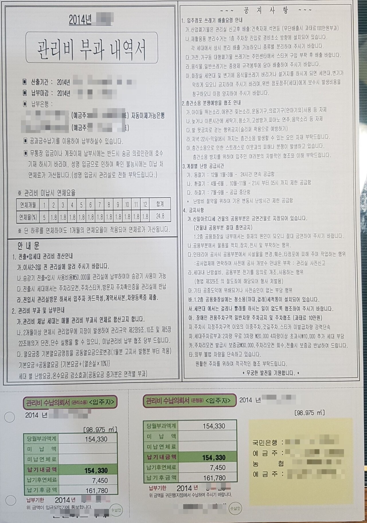 '14년 당시 여름 관리비 고지서 입니다.(위 사진)