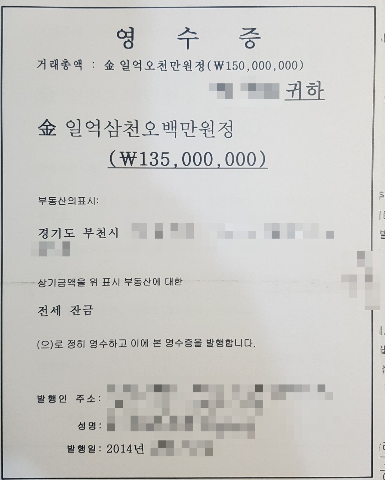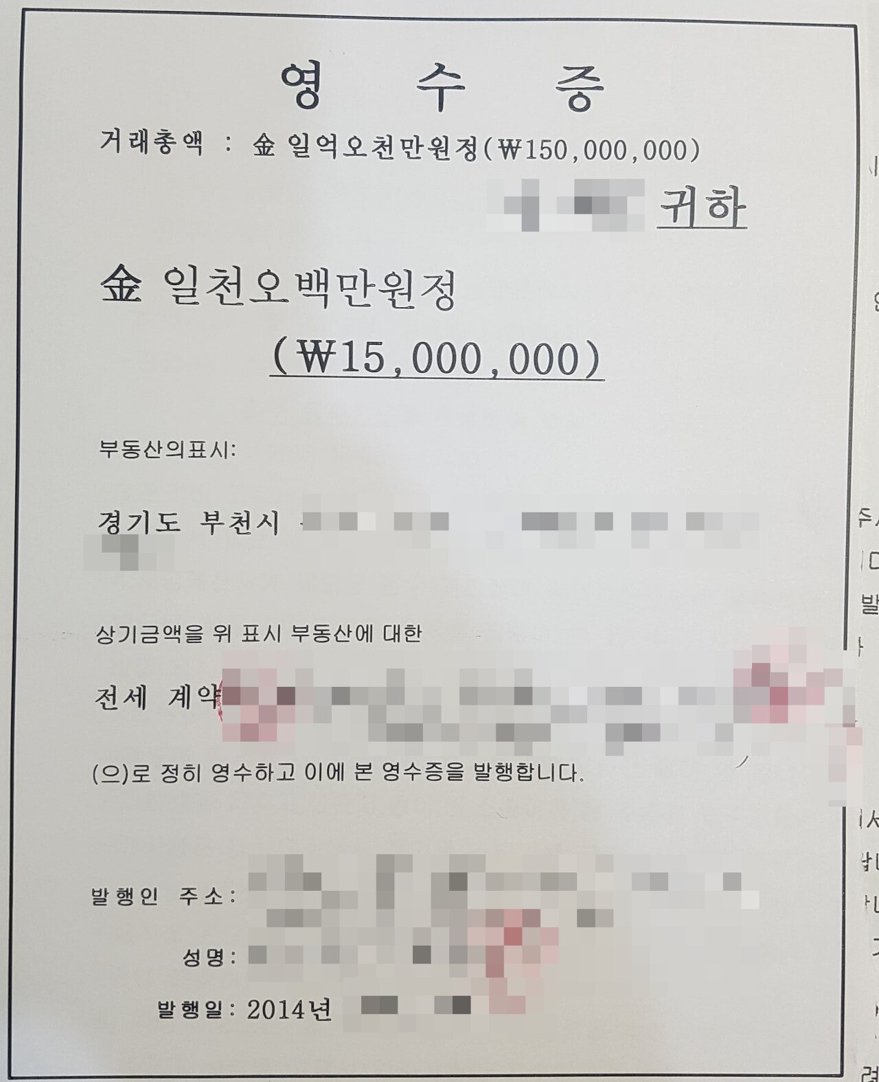 (위사진) 전세계약에 대한 계약금으로 10%인 15,000,000원을 지급 했었습니다.